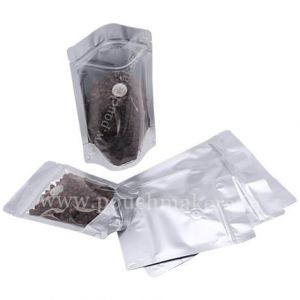 4. Clear / Shiny Silver Stand Up Pouch with Zipper & Valve for Coffee Packaging